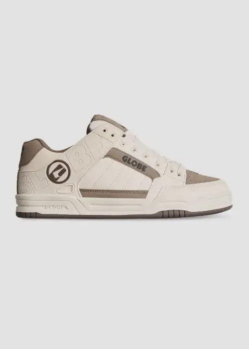 The Tilt in Parchment Globe’s classic heritage skate silhouette featuring a moulded TPR outside collar for support and durability, and S-Trac™ sole pattern for enhanced grip and board feel.