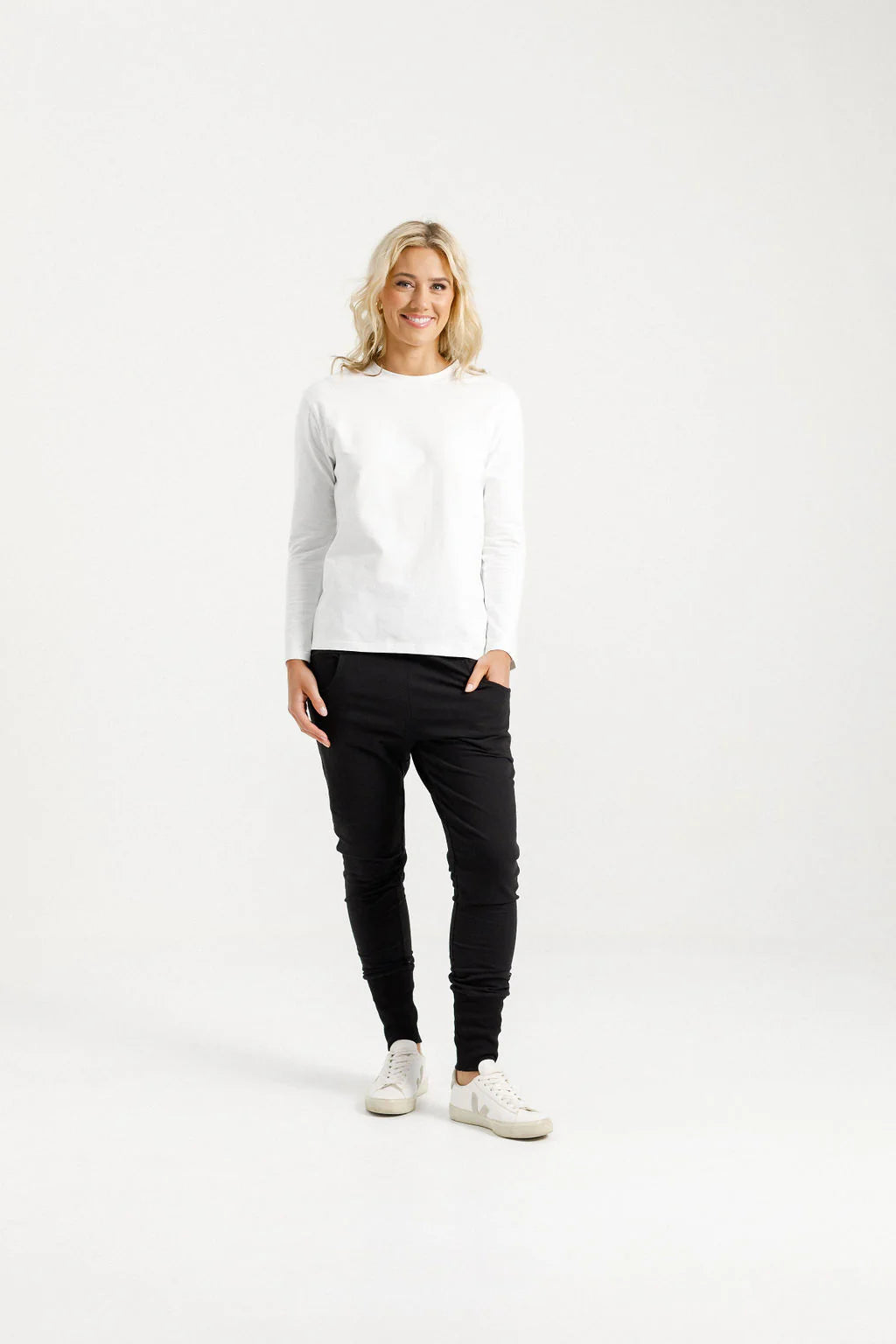 With a slim-fitting leg, fitted ankle cuffs, a comfortable elasticated waistband, and deep pockets, they’re as practical as they are stylish. Designed to sit loosely on your hips and backside, with a relaxed dropped-crotch fit, these pants redefine effortless everyday wear.