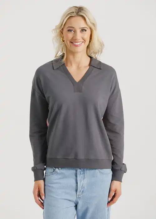 The Camilla Collar Crew in versatile Graphite is the perfect blend of comfort, style, and sophistication.This easy-fit crew jersey features... Read more