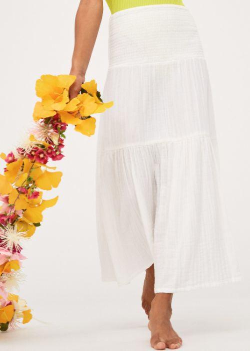 Features: Fabric: Cotton double cloth texture fabric [120 g/m2] Fit: Smocked band along top waist and tiered through skirt Branding: Branded metal plate... Read more