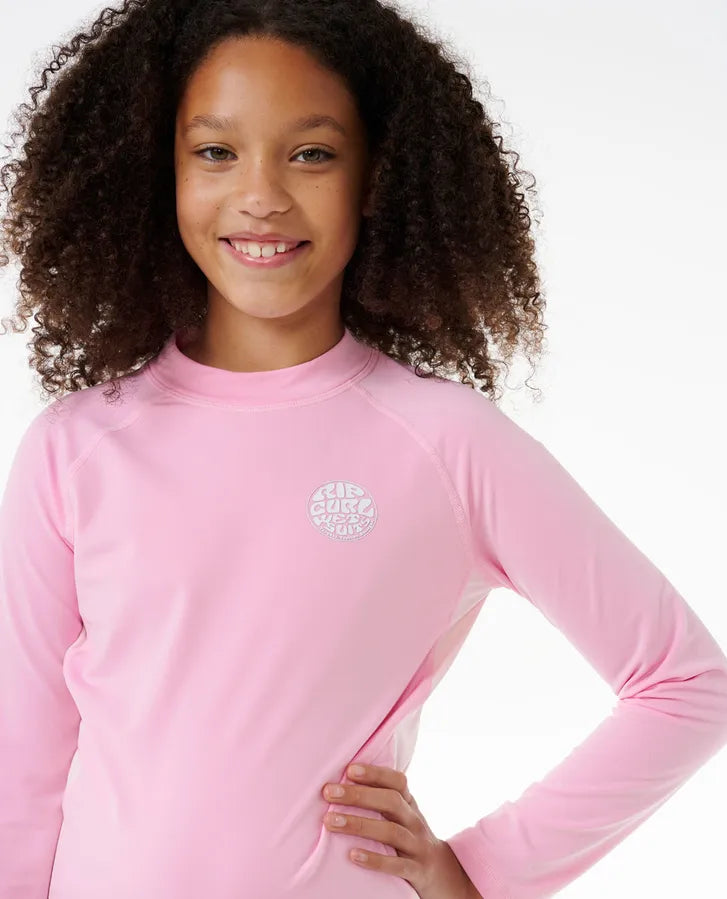 Stay protected and perform at your best with the Icon Brushed Long Sleeve Rash Vest for Girls (8-16 years). Made from brushed recycled polyester fabric, this rash vest offers excellent thermal insulation and four-way stretch for unrestricted movement. The performance fit ensures a snug and comfortable feel, ideal for active water sports. With high-density chest print and UPF 50+ UV sun protection, it combines style and sun protection. The hydrophobic quick-dry feature keeps you dry and comfortable all day long. Choose a sustainable option with this rash vest made from recycled fabric.