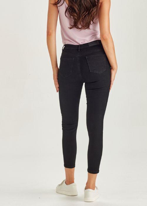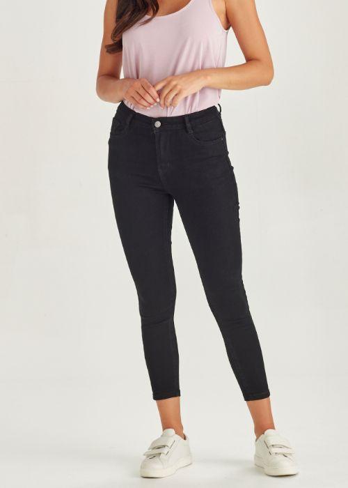 Mid/high waist stretch denim skinny jean with a 'short as' cropped length.